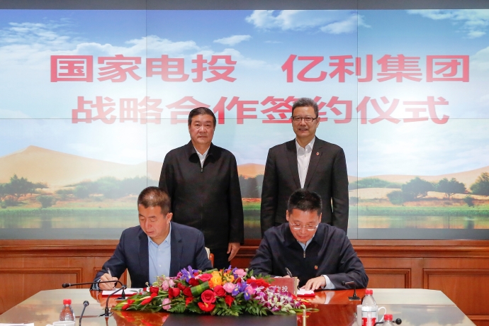 1月5日,在國家電投董事長、黨組書記錢智民,億利集團(tuán)董事長、黨委書記王文彪的共同見證下,國家電投副總經(jīng)理、黨組成員徐樹彪與億利集團(tuán)執(zhí)行董事、總裁尹鋮國代表雙方簽署戰(zhàn)略合作協(xié)議。同時,中國電力與億利光伏治沙集團(tuán)簽署項目合作協(xié)議。