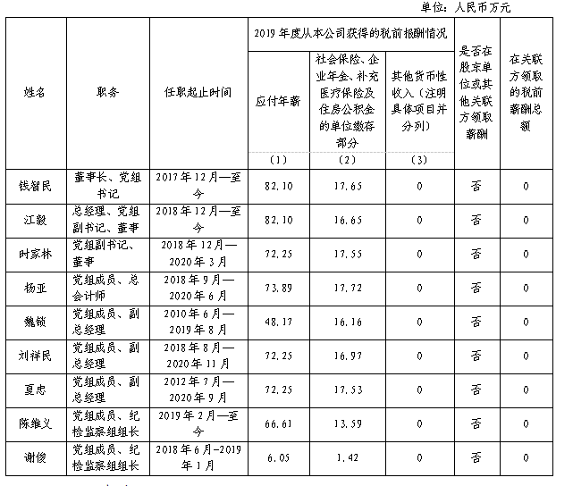 1.上表披露信息為我公司企業負責人2019年度全部應發稅前薪酬(不含2019年發放的以往年度薪酬)。