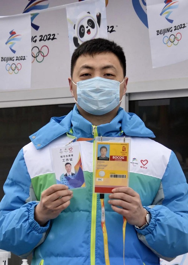 ▲王興在志愿服務(wù)后展示他的“雙奧”志愿者證件