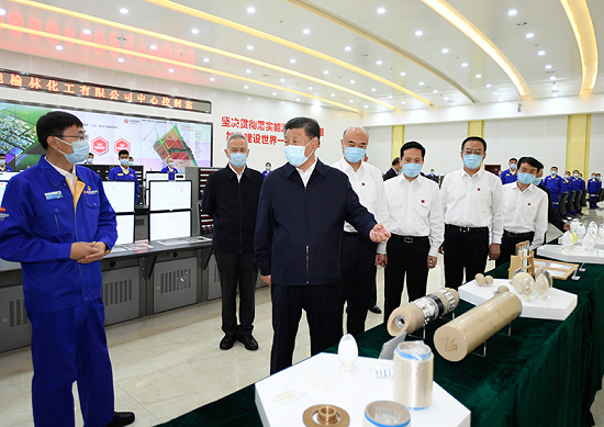 13日上午,習近平首先來到國家能源集團榆林化工有限公司,了解循環經濟煤炭綜合利用項目規劃建設運行情況。在中心控制室,習近平觀看項目產品展示,對企業堅持創新發展,堅持安全、穩定、清潔運行的做法表示肯定。隨后,習近平到年產40萬噸乙二醇項目現場察看,詢問煤化工深度發展有關情況,同企業職工代表親切交流。他強調,榆林是國家重要能源基地,為國家經濟社會發展作出了重要貢獻。煤炭作為我國主體能源,要按照綠色低碳的發展方向,對標實現碳達峰、碳中和目標任務,立足國情、控制總量、兜住底線,有序減量替代,推進煤炭消費轉型升級。煤化工產業潛力巨大、大有前途,要提高煤炭作為化工原料的綜合利用效能,促進煤化工產業高端化、多元化、低碳化發展,把加強科技創新作為最緊迫任務,加快關鍵核心技術攻關,積極發展煤基特種燃料、煤基生物可降解材料等。