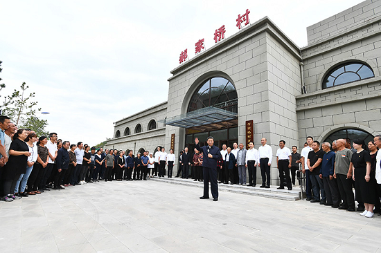 在村果蔬大棚基地,習近平仔細了解該村產業規劃發展情況,走進大棚察看葡萄長勢。在村互助幸福院、村衛生站,習近平同村里的老人、醫護人員等親切交流。他指出,來到郝家橋,我深受教育和啟發。山溝溝能走出致富路、過上好日子,靠的是政策好、人努力、天幫忙。這里能做到的,其他地方也應該能做到。重要的是深入調查研究,摸準情況、吃透問題、找到辦法、總結經驗,持續發揮典型引領示范作用,建好黨支部、選好帶頭人,把基層黨組織戰斗堡壘作用充分發揮出來。
