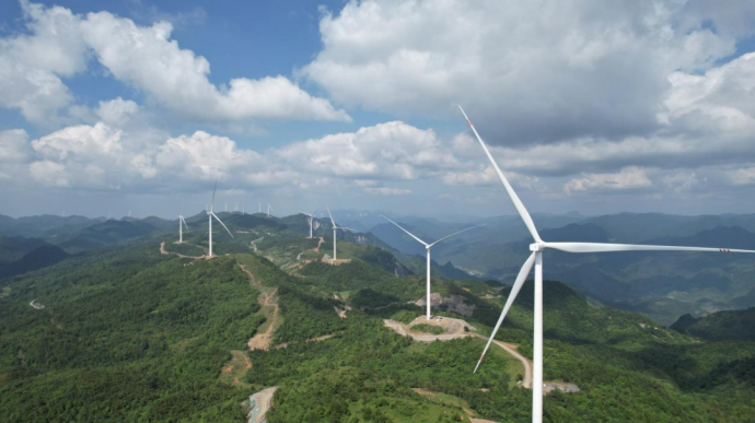 ▲五凌電力碗米坡電廠大青山二期50兆瓦風電項目實現全容量發電。