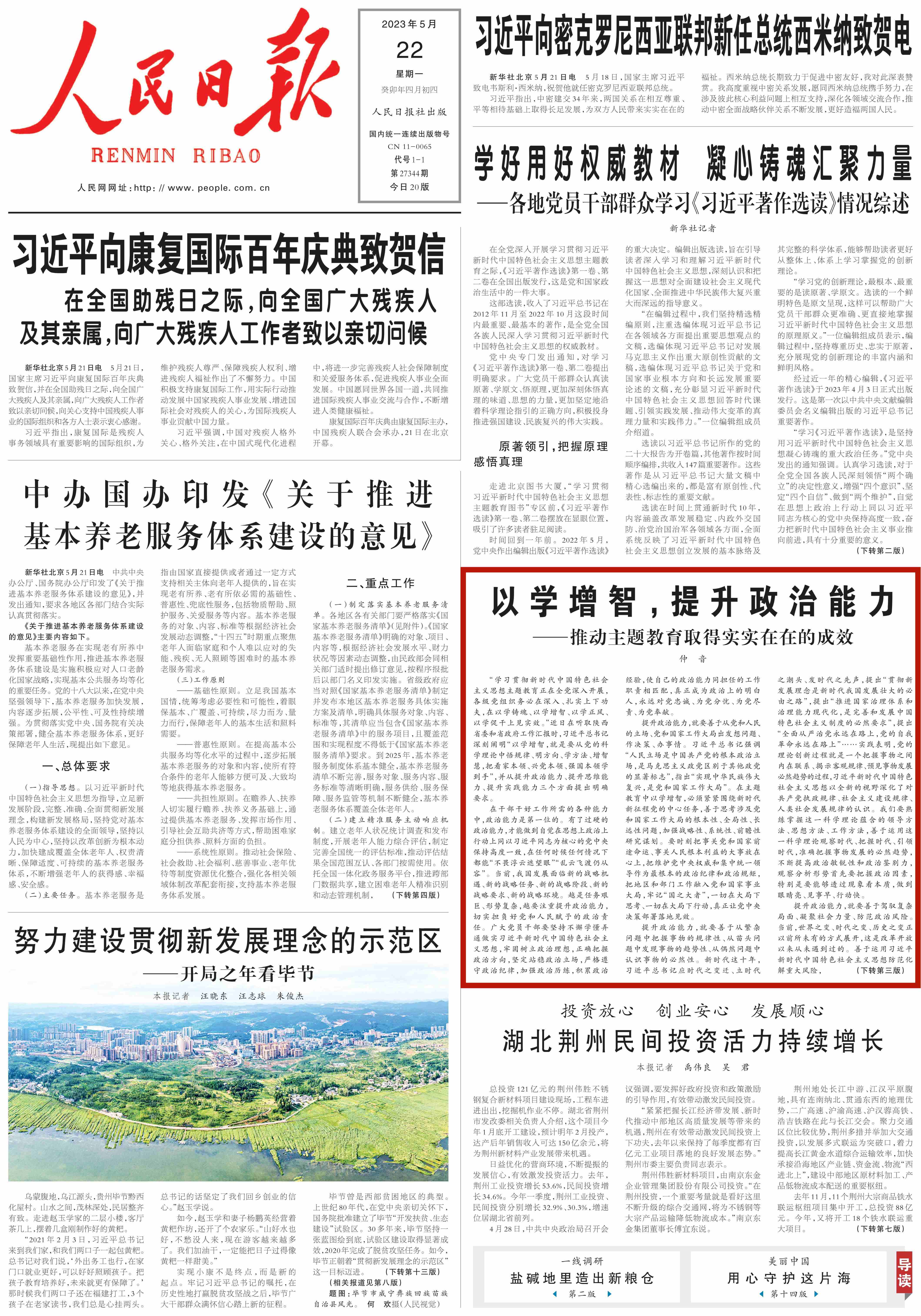 “學習貫徹新時代中國特色社會主義思想主題教育正在全黨深入開展,各級黨組織務必在深入、扎實上下功夫,在以學鑄魂、以學增智、以學正風、以學促干上見實效。”近日在聽取陜西省委和省政府工作匯報時,習近平總書記深刻闡明“以學增智,就是要從黨的科學理論中悟規律、明方向、學方法、增智慧,把看家本領、興黨本領、強國本領學到手”,并從提升政治能力、提升思維能力、提升實踐能力三個方面提出明確要求。《人民日報》刊發三篇仲音文章,圍繞“以學增智”進行重點闡釋。