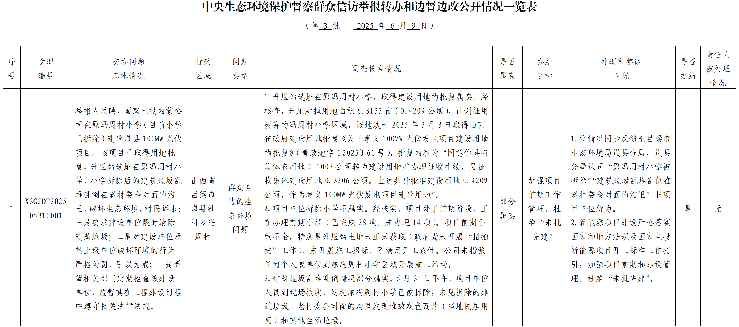 中央生態環境保護督察群眾信訪舉報轉辦和邊督邊改公開情況一覽表(第三批)