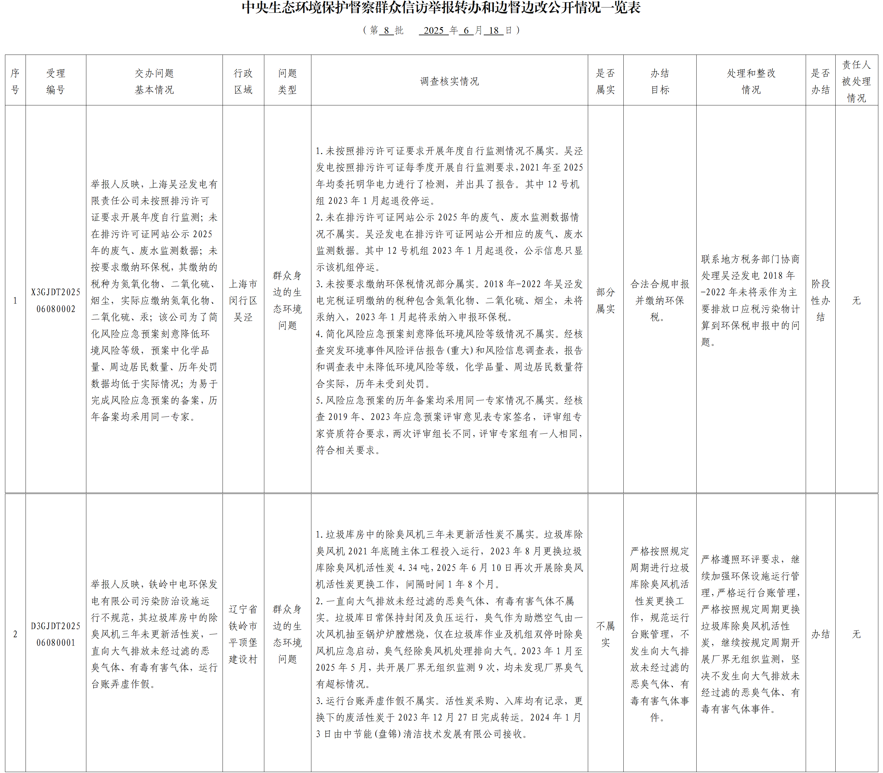 中央生態環境保護督察群眾信訪舉報轉辦和邊督邊改公開情況一覽表(第八批)